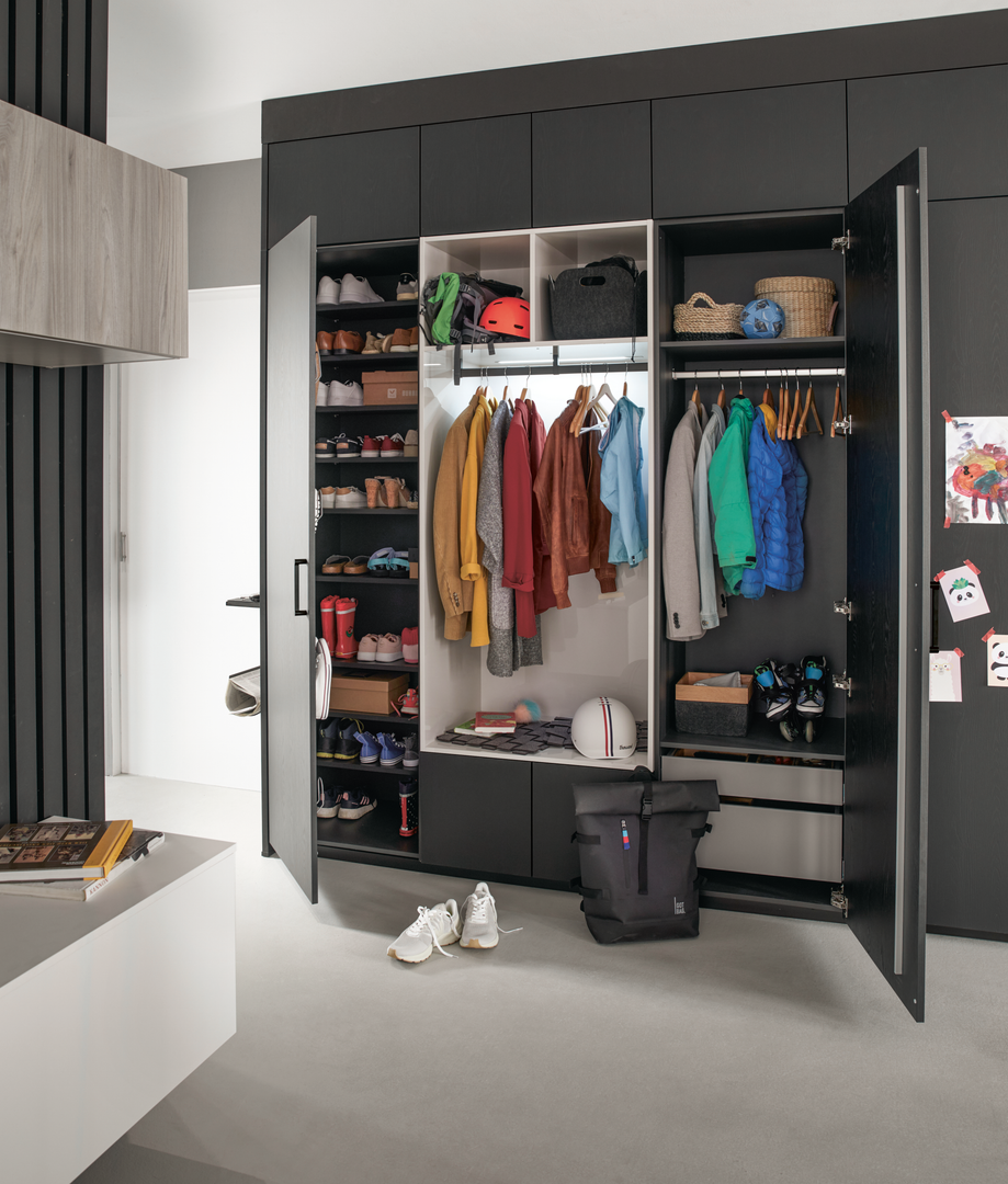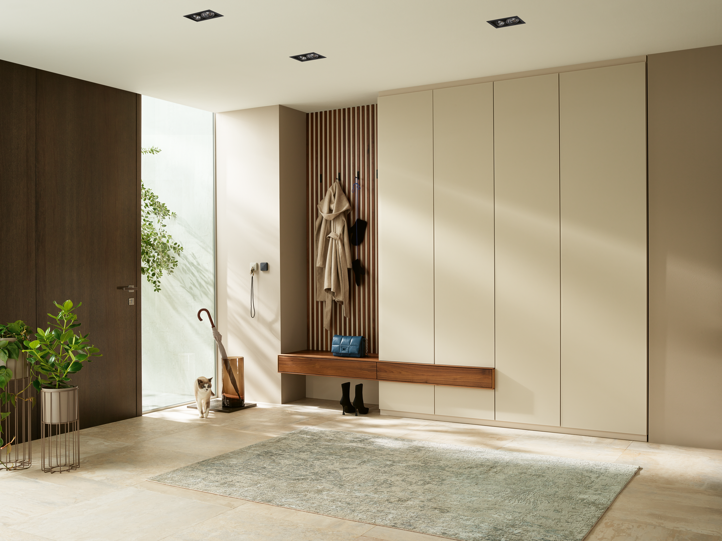 Als Visitenkarten für die eigenen 4 Wände vermittelt der Garderobenbereich den Designeinstieg in Ihre Wohnung. Außerdem bietet er Stauraum für alles, was man beim Kommen und Gehen so braucht. Von den Gummistiefeln bis zur Hutablage. Die Handtaschen, Mäntel, Mützen und viele weitere Accessoires nicht zu vergessen.