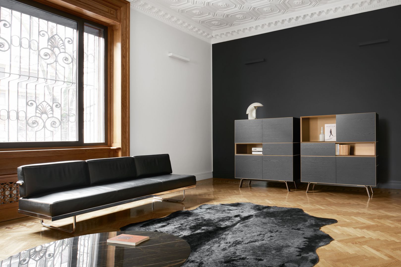 Wohnlandschaften hier, hochbeinige und grazile Sofas als Blickfang da. Auch das Auge wohnt mit. Deshalb schaffen zwischendurch oft schwarze, aber auch glänzend silberne oder farbig lackierte Metallgestelle farbige und designtechnische Kontraste – und wirken dadurch platzsparend und dennoch sehr elegant.