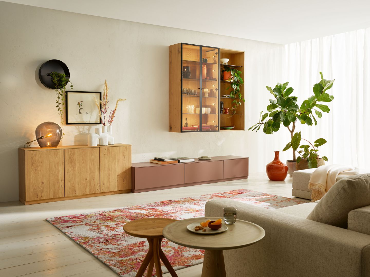 Im Wohnzimmer darf es auch ein bisschen mehr sein. Purismus ist das Eine, der topaktuelle Trend nach üppiger Deko das Andere. Es muss nicht immer schlicht sein und weniger ist auch nicht immer mehr. Deshalb halten auch wieder Samt, Seide und Brokat Einzug in unsere Wohnzimmer. Dazu gesellen sich warme Holztöne bei Regalen, Kommoden, Vitrinen und TV-Möbel.
